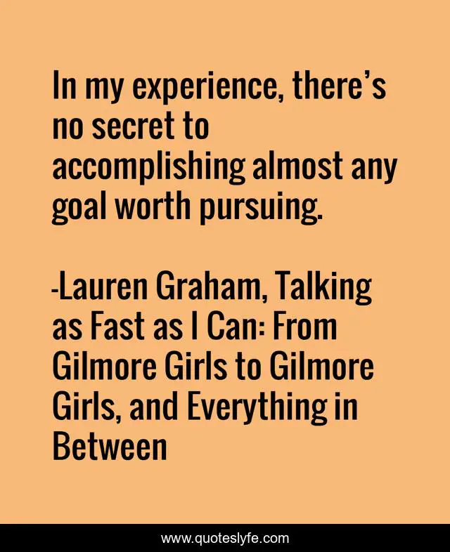 This page presents the quote "In my experience, there’s no secret to accomplishing almost any goal worth pursuing.". Author of this quote is Lauren Graham, Talking as Fast as I Can: From Gilmore Girls to Gilmore Girls, and Everything in Between. This quote is about accomplishment, goals,.
