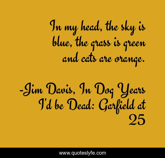 This page presents the quote "In my head, the sky is blue, the grass is green and cats are orange.". Author of this quote is Jim Davis, In Dog Years I'd be Dead: Garfield at 25. This quote is about orange, garfield, cats,.