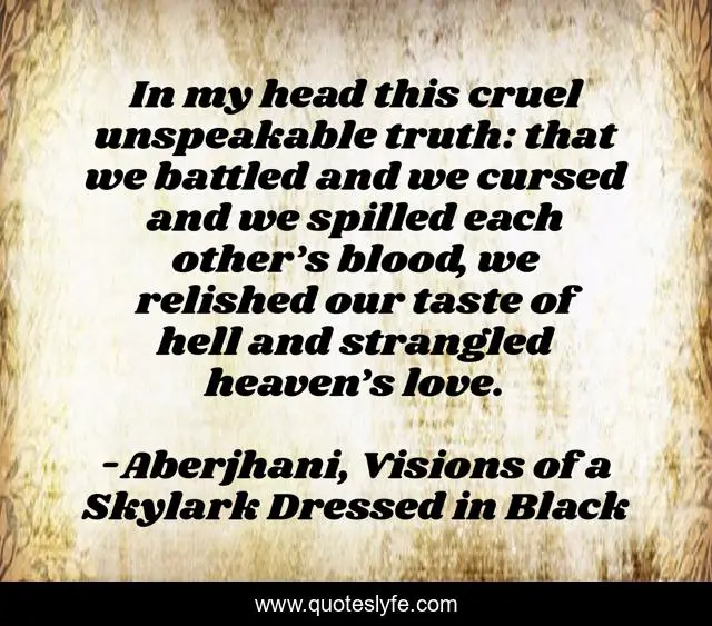 "Aberjhani, Visions of a Skylark Dressed in Black Quotes." Quoteslyfe.com, 2025. Sat. 06 Dec. 2025. <https://www.quoteslyfe.com/quote/In-my-head-this-cruel-unspeakable-truth-175446>.