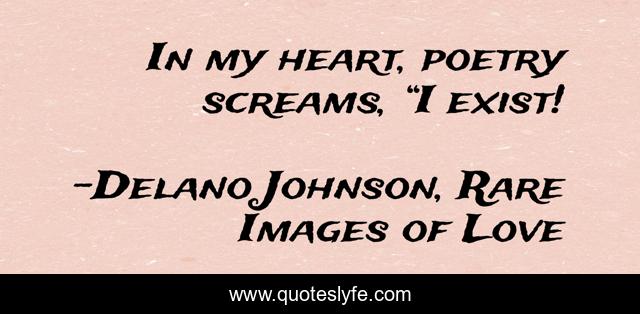 This page presents the quote "In my heart, poetry screams, “I exist!". Author of this quote is Delano Johnson, Rare Images of Love. This quote is about poetry, poets-and-poetry,.