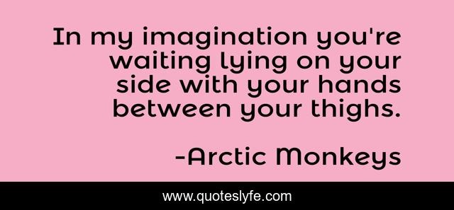This page presents the quote "In my imagination you're waiting lying on your side with your hands between your thighs.". Author of this quote is Arctic Monkeys. This quote is about music, lyrics,.