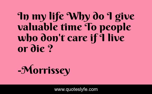 This page presents the quote "In my life Why do I give valuable time To people who don't care if I live or die ?". Author of this quote is Morrissey. This quote is about life, death, importance-of-existence,.