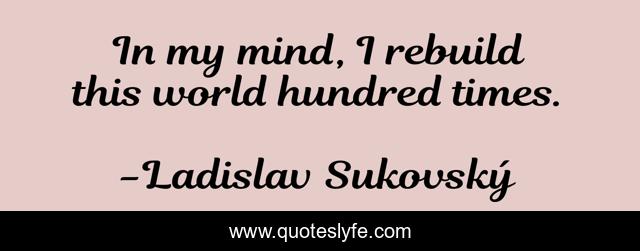 This page presents the quote "In my mind, I rebuild this world hundred times.". Author of this quote is Ladislav Sukovský. .