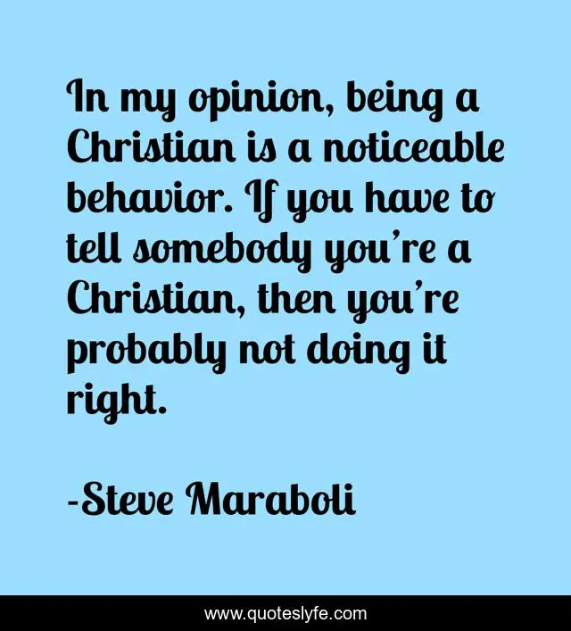 This page presents the quote "In my opinion, being a Christian is a noticeable behavior. If you have to tell somebody you’re a Christian, then you’re probably not doing it right.". Author of this quote is Steve Maraboli. This quote is about opinion, christian, behavior,.