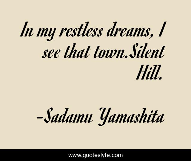 This page presents the quote "In my restless dreams, I see that town.Silent Hill.". Author of this quote is Sadamu Yamashita. This quote is about dreams, memory,.