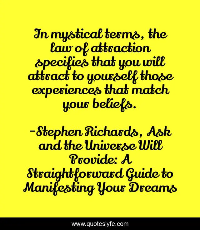 "Stephen Richards, Ask and the Universe Will Provide: A Straightforward Guide to Manifesting Your Dreams Quotes." Quoteslyfe.com, 2025. Mon. 08 Dec. 2025. <https://www.quoteslyfe.com/quote/In-mystical-terms-the-law-of-attraction-44761>.