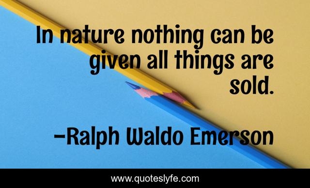 This page presents the quote "In nature nothing can be given all things are sold.". Author of this quote is Ralph Waldo Emerson. This quote is about giving, goodness,.