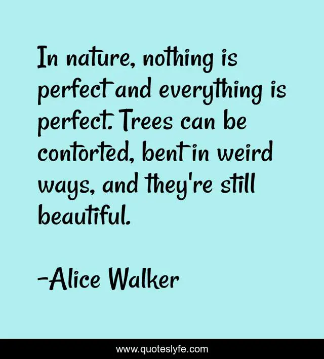 "Alice Walker Quotes." Quoteslyfe.com, 2025. Mon. 08 Dec. 2025. <https://www.quoteslyfe.com/quote/In-nature-nothing-is-perfect-and-everything-292070>.