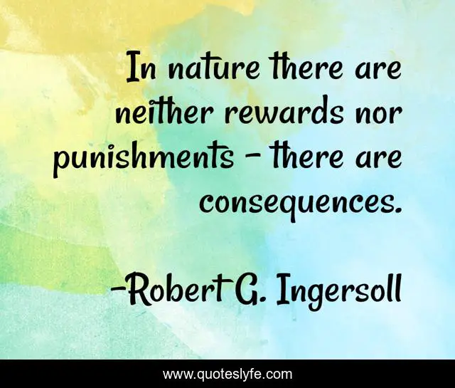 This page presents the quote "In nature there are neither rewards nor punishments - there are consequences.". Author of this quote is Robert G. Ingersoll. .