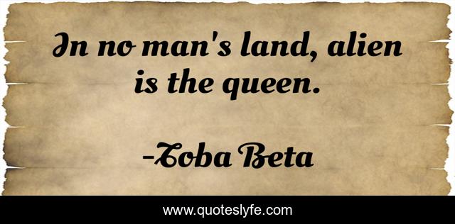 This page presents the quote "In no man's land, alien is the queen.". Author of this quote is Toba Beta. This quote is about life, land, queen, alien, truth, man,.