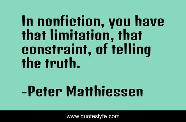 This page presents the quote "In nonfiction, you have that limitation, that constraint, of telling the truth.". Author of this quote is Peter Matthiessen. .