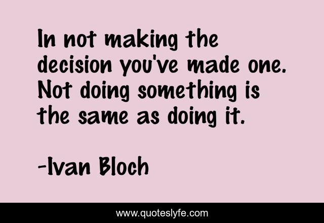 This page presents the quote "In not making the decision you've made one. Not doing something is the same as doing it.". Author of this quote is Ivan Bloch. .