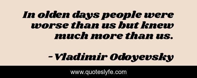 This page presents the quote "In olden days people were worse than us but knew much more than us.". Author of this quote is Vladimir Odoyevsky. This quote is about mankind, history,.