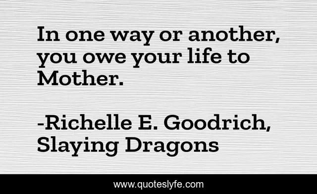 This page presents the quote "In one way or another, you owe your life to Mother.". Author of this quote is Richelle E. Goodrich, Slaying Dragons. This quote is about mom-s-day, mothers, richelle-e-goodrich, mommy, mother-s-day, richelle, mom, mother, richelle-goodrich,.