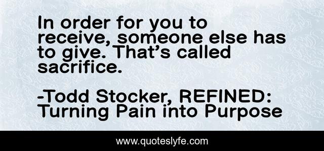 This page presents the quote "In order for you to receive, someone else has to give. That’s called sacrifice.". Author of this quote is Todd Stocker, REFINED: Turning Pain into Purpose. This quote is about confidence, give, receive, positive, sacrifice, motivational, optimistic,.