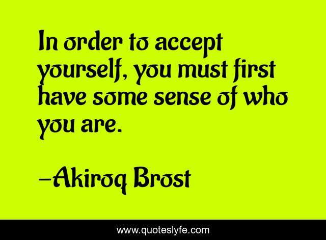 This page presents the quote "In order to accept yourself, you must first have some sense of who you are.". Author of this quote is Akiroq Brost. This quote is about self-acceptance, self-love,.