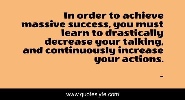 This page presents the quote "In order to achieve massive success, you must learn to drastically decrease your talking, and continuously increase your actions.". Author of this quote is . This quote is about massive-success, increase-you-actions, achieve-success, taking-more-actions, edmond-mbiaka, learn-to-talk-less, achieving-success, talking-less,.