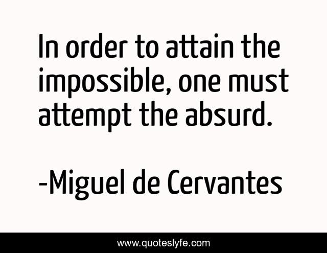 This page presents the quote "In order to attain the impossible, one must attempt the absurd.". Author of this quote is Miguel de Cervantes. This quote is about impossible, order,.