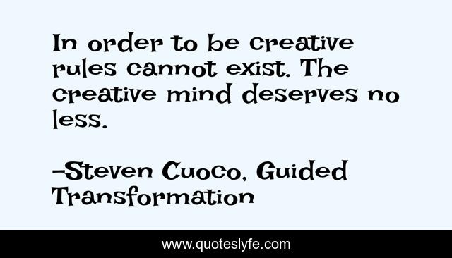 This page presents the quote "In order to be creative rules cannot exist. The creative mind deserves no less.". Author of this quote is Steven Cuoco, Guided Transformation. This quote is about brainy, best-selling-thriller-authors, quote-of-the-day, brainyquote-com, inspirational, quotes-to-live-by, enthusiasm, brainy-words,.