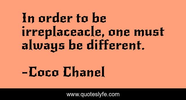 This page presents the quote "In order to be irreplaceacle, one must always be different.". Author of this quote is Coco Chanel. .