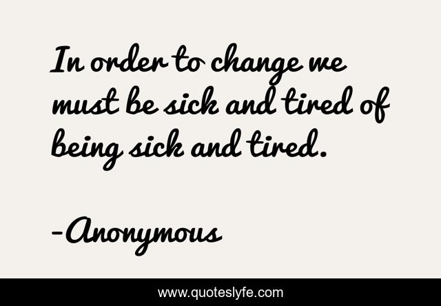 This page presents the quote "In order to change we must be sick and tired of being sick and tired.". Author of this quote is Anonymous. .