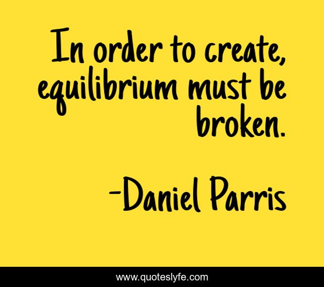 This page presents the quote "In order to create, equilibrium must be broken.". Author of this quote is Daniel Parris. This quote is about science, science-and-change,.
