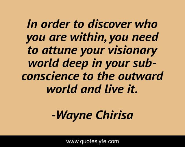 In order to discover who you are within, you need to attune your visionary world deep in your sub-conscience to the outward world and live it.