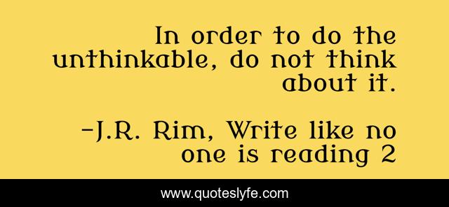 "J.R. Rim, Write like no one is reading 2 Quotes." Quoteslyfe.com, 2025. Fri. 05 Dec. 2025. <https://www.quoteslyfe.com/quote/In-order-to-do-the-unthinkable-do-163043>.