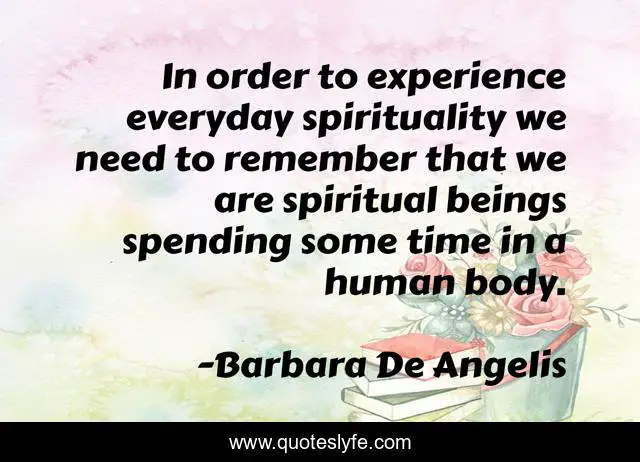 This page presents the quote "In order to experience everyday spirituality we need to remember that we are spiritual beings spending some time in a human body.". Author of this quote is Barbara De Angelis. This quote is about faith, unity,.