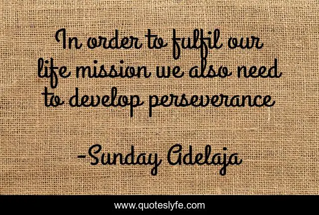 This page presents the quote "In order to fulfil our life mission we also need to develop perseverance". Author of this quote is Sunday Adelaja. This quote is about perseverance, life, fulfilment, mission, purpose,.