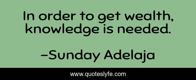 This page presents the quote "In order to get wealth, knowledge is needed.". Author of this quote is Sunday Adelaja. This quote is about needed, knowledge, wealth,.