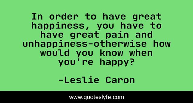 This page presents the quote "In order to have great happiness, you have to have great pain and unhappiness-otherwise how would you know when you're happy?". Author of this quote is Leslie Caron. .