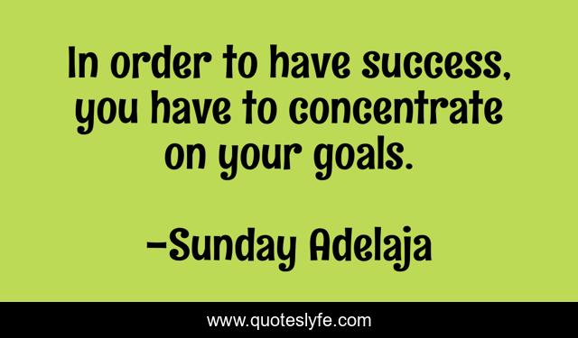 This page presents the quote "In order to have success, you have to concentrate on your goals.". Author of this quote is Sunday Adelaja. This quote is about concentrate, goals, success, order,.