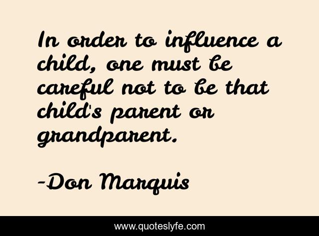 This page presents the quote "In order to influence a child, one must be careful not to be that child's parent or grandparent.". Author of this quote is Don Marquis. This quote is about grandparent, humor, influence,.
