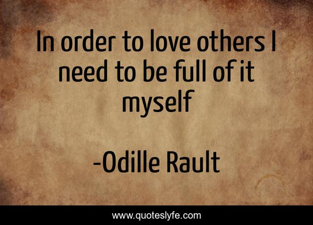 This page presents the quote "In order to love others I need to be full of it myself". Author of this quote is Odille Rault. This quote is about self-esteem, self-love, self-worth, self-improvement, self-help,.