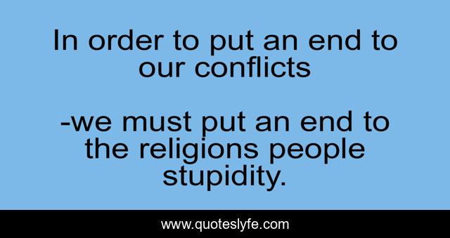 This page presents the quote "In order to put an end to our conflicts". Author of this quote is we must put an end to the religions people stupidity.. .