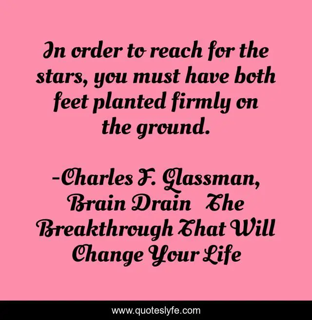 This page presents the quote "In order to reach for the stars, you must have both feet planted firmly on the ground.". Author of this quote is Charles F. Glassman, Brain Drain The Breakthrough That Will Change Your Life. This quote is about spiritual, practical-wisdom, dreams, personal-growth,.