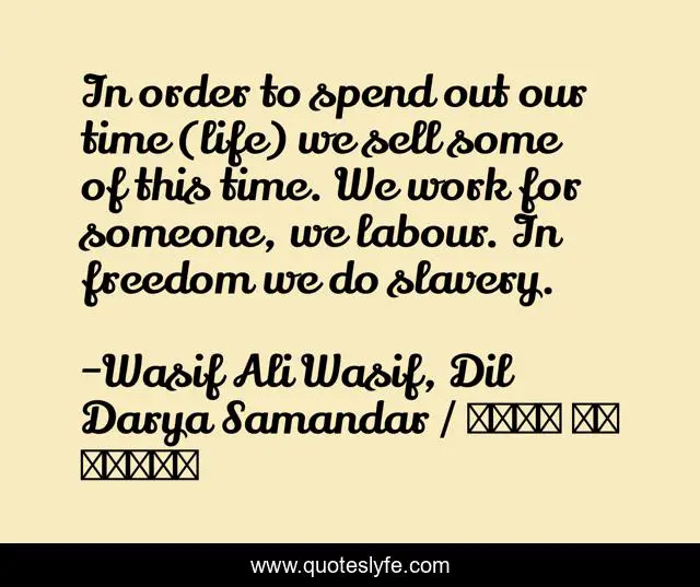 "Wasif Ali Wasif, Dil Darya Samandar / دل دریا سمندر Quotes." Quoteslyfe.com, 2025. Fri. 05 Dec. 2025. <https://www.quoteslyfe.com/quote/In-order-to-spend-out-our-time-247632>.