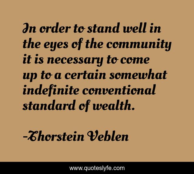 This page presents the quote "In order to stand well in the eyes of the community it is necessary to come up to a certain somewhat indefinite conventional standard of wealth.". Author of this quote is Thorstein Veblen. This quote is about society, social,.