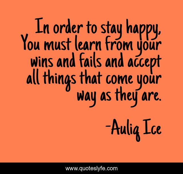 In order to stay happy, You must learn from your wins and fails and accept all things that come your way as they are.