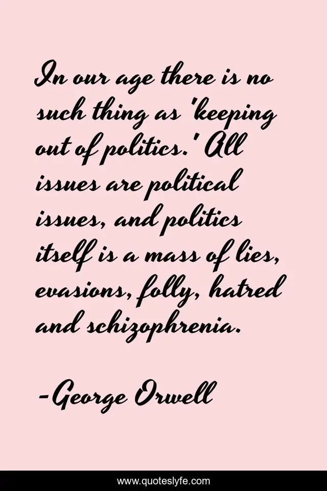 In our age there is no such thing as 'keeping out of politics.' All issues are political issues, and politics itself is a mass of lies, evasions, folly, hatred and schizophrenia.