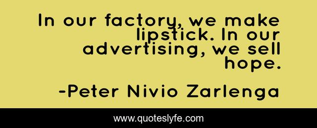 This page presents the quote "In our factory, we make lipstick. In our advertising, we sell hope.". Author of this quote is Peter Nivio Zarlenga. This quote is about sell, advertising, lipstick,.