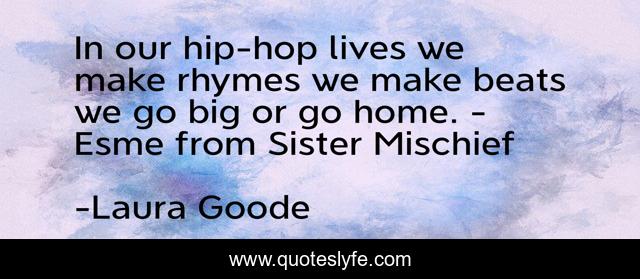 This page presents the quote "In our hip-hop lives we make rhymes we make beats we go big or go home. - Esme from Sister Mischief". Author of this quote is Laura Goode. This quote is about young-adult, hip-hop,.