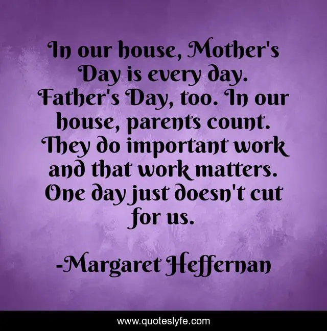 This page presents the quote "In our house, Mother's Day is every day. Father's Day, too. In our house, parents count. They do important work and that work matters. One day just doesn't cut for us.". Author of this quote is Margaret Heffernan. This quote is about work, father, mother,.