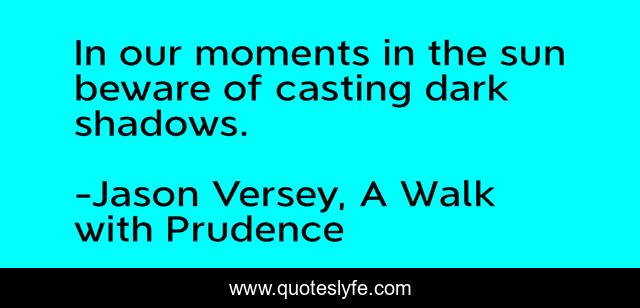 This page presents the quote "In our moments in the sun beware of casting dark shadows.". Author of this quote is Jason Versey, A Walk with Prudence. This quote is about darkness, humility,.