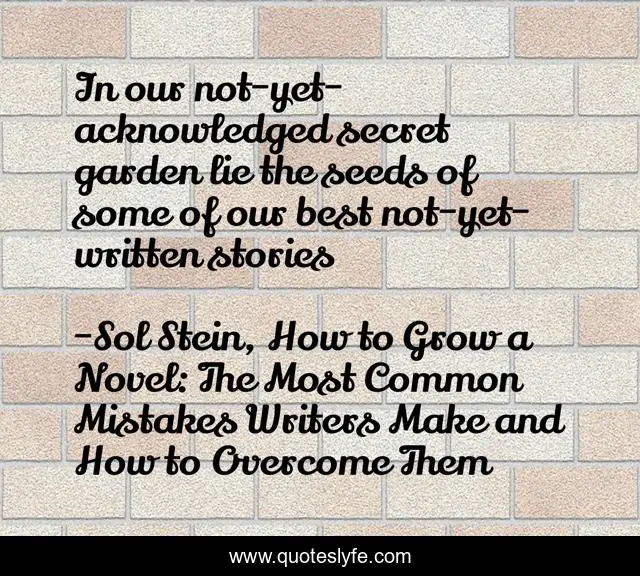 "Sol Stein, How to Grow a Novel: The Most Common Mistakes Writers Make and How to Overcome Them Quotes." Quoteslyfe.com, 2025. Mon. 08 Dec. 2025. <https://www.quoteslyfe.com/quote/In-our-not-yet-acknowledged-secret-garden-212396>.