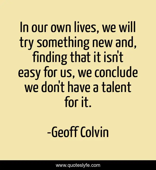 This page presents the quote "In our own lives, we will try something new and, finding that it isn't easy for us, we conclude we don't have a talent for it.". Author of this quote is Geoff Colvin. This quote is about talent, business, hard-work,.