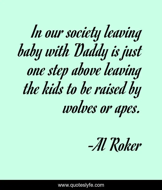 This page presents the quote "In our society leaving baby with Daddy is just one step above leaving the kids to be raised by wolves or apes.". Author of this quote is Al Roker. This quote is about baby, step, leaving,.