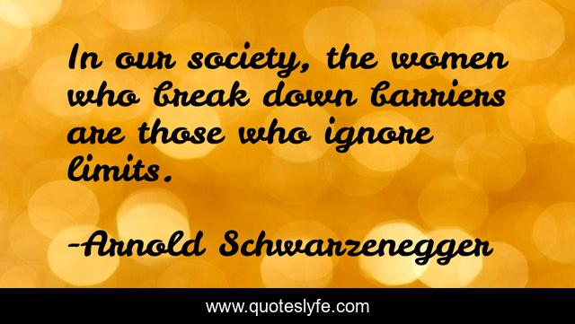 This page presents the quote "In our society, the women who break down barriers are those who ignore limits.". Author of this quote is Arnold Schwarzenegger. This quote is about down, limits, women,.