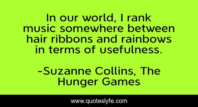 "Suzanne Collins, The Hunger Games Quotes." Quoteslyfe.com, 2025. Fri. 05 Dec. 2025. <https://www.quoteslyfe.com/quote/In-our-world-I-rank-music-somewhere-78683>.